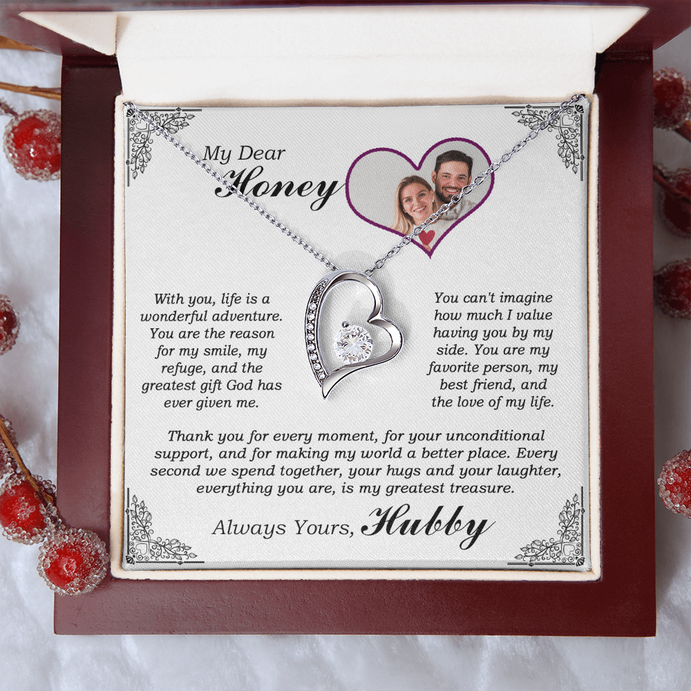 The dazzling Forever Love Necklace is sure to make her heart melt! This necklace features a stunning 6.5mm CZ crystal surrounded by a polished heart pendant embellished with smaller crystals to add extra sparkle and shine. Beautifully crafted with either a white gold or yellow gold finish, be sure to give her a classic gift she can enjoy everyday.